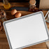 This aluminum baking sheet tray is perfect for all your baking needs. It is made with durable aluminum material, providing even heat distribution for perfectly baked goods every time. Its smooth surface allows for easy release and cleanup. Upgrade your baking game with this professional-quality tray.